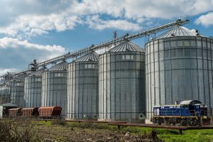 Tall silos stand at a grain storage facility, filled with harvested crops and situated alongside a railway, showcasing the farming industry Written by Faith2014 on August 4, 2025. Previous