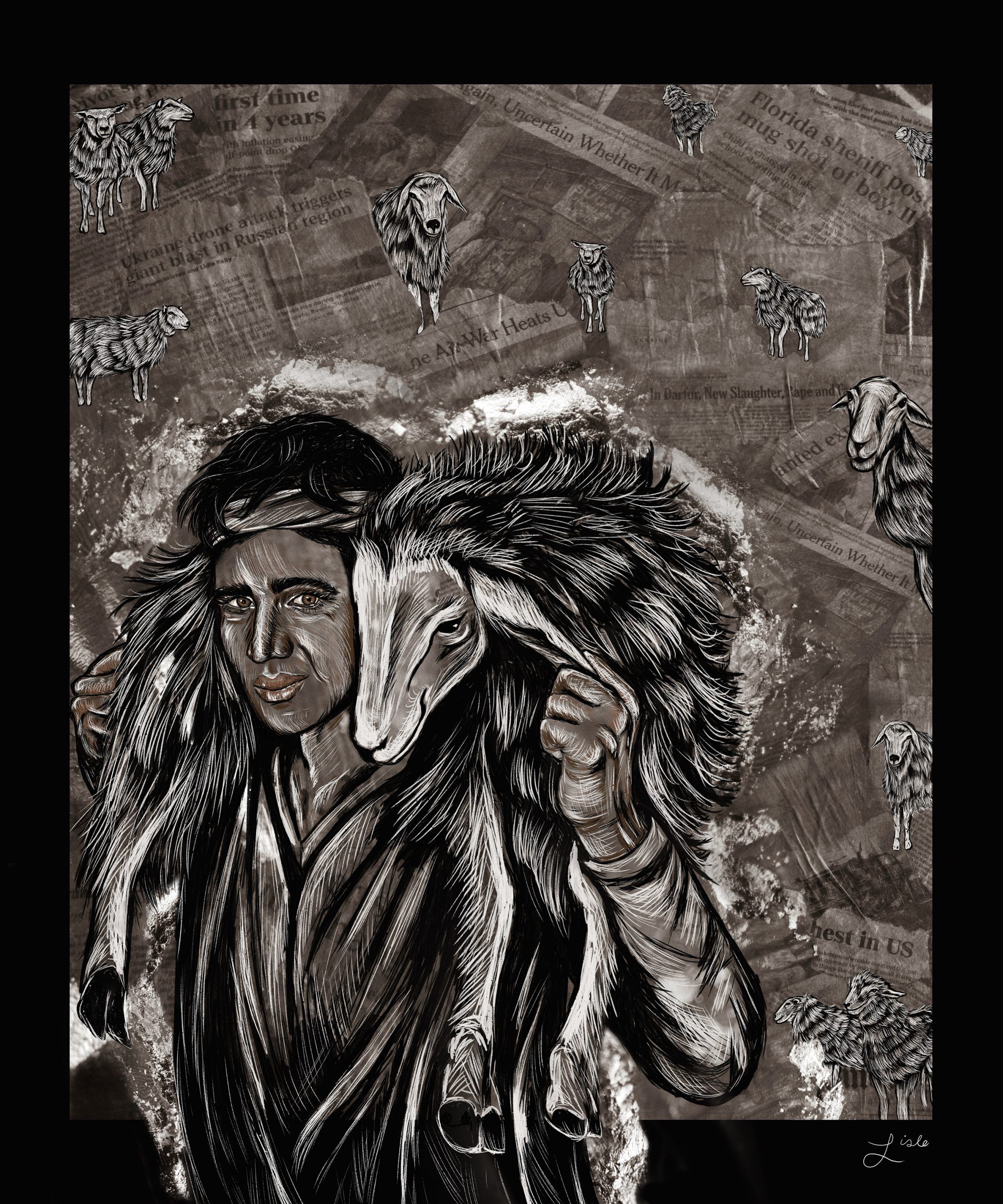 Herding sheep is a never-ending task. As soon as one is found, another may go missing. Our lives have a similar ebb and flow—in one moment we might feel like we have it all together, and in the next, we’re struggling to survive. The promise of this parable is that no matter how “lost” we feel, the Good Shepherd is by our side. (Sanctified Art, www.sanctifiedart.org)